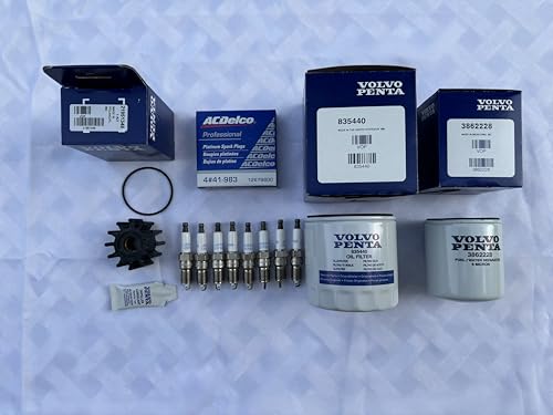 Volvo Penta 5.0, 5.7, 8.1L OEM Service Kit Gi/Gxi/Gsi Includes: Fuel & Oil Filter, Impeller, and AC Spark Plugs