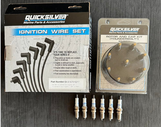 OEM V6 4.3L Mercruiser Thunderbolt IV V Ignition Tune up kit Wires Distributor Cap/Rotor Spark Plugs 4.3L Midnight Marine Service